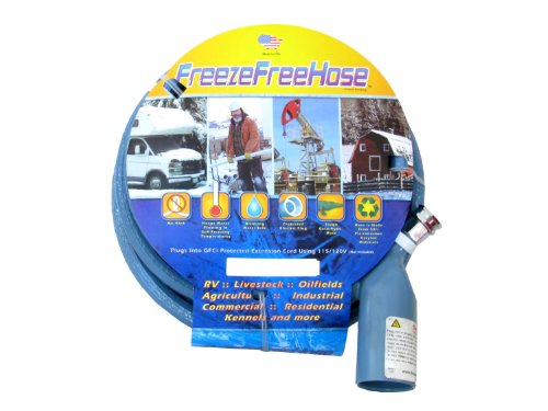 The Freeze Free Hose is a revolutionary heated RV hose. Plugs into your own GFCI protected extension cord to prevent freezing and provide water flow in below freezing temperature. Electric "cuff" protects electrical plug from weather damage and meets NSF-61 Annex G requirements ensuring you this is a safe product for your outdoor applications. Other frost free hoses keep constant heat no matter wh